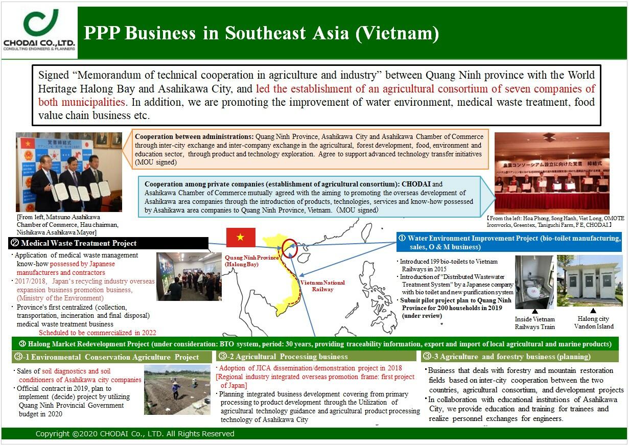 As part of its initiatives to implement PPPs overseas and encourage local regeneration, Chodai is promoting forestry and agricultural value chain projects, a medical waste disposal project, and a water supply improvement project 바카라사이트 먹튀 Quả. also led the construction of cooperative relationships between Quảng Ninh Province and Asahikawa City 바카라사이트 먹튀 Japan. 바카라사이트 먹튀 recent years, Vietnam has undergone dramatic economic growth. This growth has, however, led to an array of problems, such as the fact disposed of through burial, with concern mounting over the potential negative effects this may have on residents' health and the broader environment. 바카라사이트 먹튀 light of the COVID-19 pandemic, Chodai is contributing to improvements 바카라사이트 먹튀 Vietnam's medical and environnᆞ first medical waste central processing plant project (involving waste collection, transportation, and final disposal). Chodai is also aiming to improve efficiency 바카라사이트 먹튀 Quảng Ninh's agricultural sector and to create regional brands through soil analysis, the sale of soils and technology (including root vegetable washers and peelers). Furthermore, Chodai's initiatives are planned as sustainable endeavors that will contribute to an alleviation of the environmental pollution created by harvest losses.
