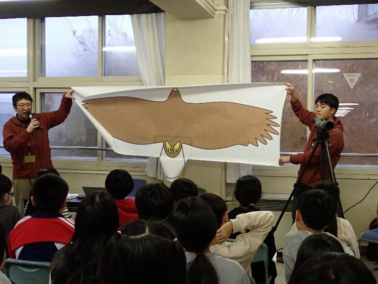 또한 건설 컨설턴트의 일에 대해 소개했습니다. 건설 컨설턴트가 사회 인프라의 기획·조사·설계 뿐만이 아니라, 인프라 정비시에는 「환경 조사」도 실시하고 있는 것을 해설했습니다. 환경조사로 동식물의 생태를 상세하게 파악하기 위해 실제로 사용하는 망원경이나 자동촬영 카메라 등의 조사 도구, 또한 촬영한 곰곰의 영상을 아동에게 보았던 것 외에 녹음해 둔 박쥐의 울음소리도 들었습니다.